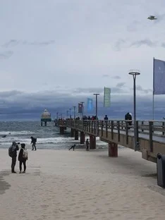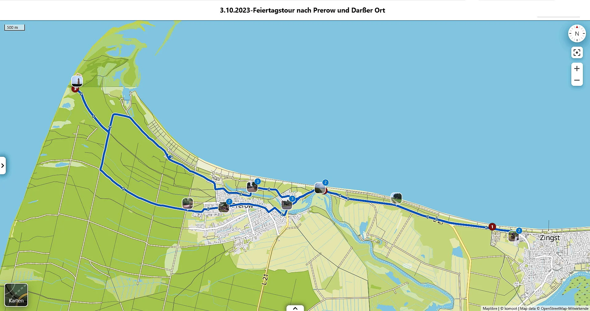 Wir starten um 10 Uhr über den Radweg Richtung Prerow bis zum Darßer Heimatmuseum. Dort ist heute Trödel- und Flohmarkt. Anschließend fahren wir ca 6 km weiter bis zum Leuchtturm am Darßer Ort. Wir gehen an den Strand und verweilen dort eine ganze Weile. Dann stapfen wir durch den Sand wieder nach oben zu unseren Rädern und fahren zurück nach Prerow bis zur Seebrücke. Im Restaurant "Binnen & Buten" essen wir Fischsuppe und Dreierlei Hering (Matjes, gebraten und süß-sauer). Dann bummeln wir noch die Strandpromenade ab und schauen die Auslagen der Schmuck- und Souvenierläden an. Dann geht es über den Radweg mit viel Rückenwind (bis zu 25 Km/h ohne demmeln!) wieder zurück nach Zingst. Kurz vor unserem Quartier hat Tobias einen Platten am Vorderreifen. Nach der Reparatur trinken wir im Bungalow Kaffee und radeln nochmal nach Zingst zum Max Hüntgen Haus um für die morgige Fotosafari ein Teleobjektiv auszuleihen. Den Abend verbringen wir mit dem ZDF-Abendprogramm.