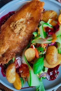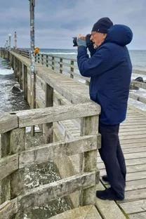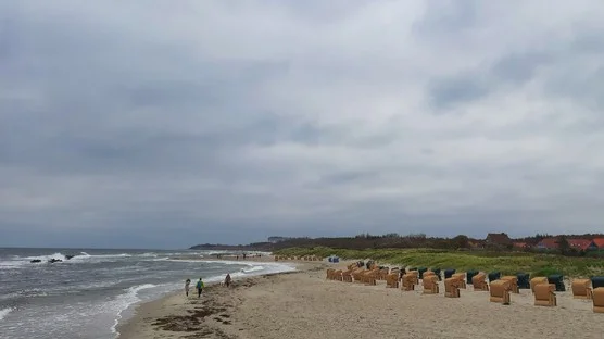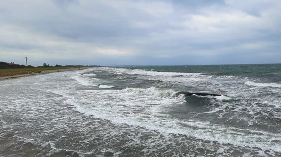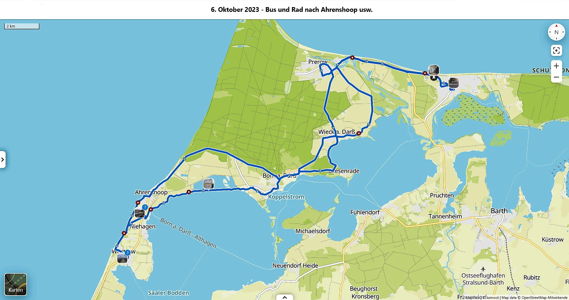 Um 10.15 Uhr radeln wir zur Bushaltestelle im Stadtzentrum und nehmen um 10.50 Uhr den Bus in Richtung Ribnitz-Damgarten. Die Räder finden im Anhänger Platz. In Ahrenshoop-Mitte steigen wir aus und fahren mit dem Rad am Küstenradweg entlang nach Wustrow. An der Seebrücke machen wir halt. Die Wellen sind heute dem starken Wind geschuldet gigantisch. Wir fahren weiter in Richtung Ortszentrum als es zu regnen beginnt. Wir stellen uns in einem Bushäuschen unter und warten kurz bis der Regen etwas nachlässt. Dann fahren wir bis zur Kirche und besichtigen diese. Der Regen hat wieder Fahrt aufgenommen und wir suchen erneut Schutz im Restaurant "Lucy" gegenüber der Kirche. Wir bestellen Kürbisfischsuppe und Backfisch mit Drilling-Kartoffeln, Remoulade und viel leckerem Salat. Da es immer noch regnet genehmigt sich Martina noch ein Dessert und Tobias einen Kaffee. Als der Regen gegen 14.15 Uhr vorbei ist radeln wir bis zum Hafen Althagen und von aus weiter über den Boddenradweg nach Born, weiter nach Wieck bis Prerow. Der starke Westwind schiebt kräftig von hinten bzw. von der Seite. Von Prerow aus geht es auch dem Küstenradweg zurück zum Quartier in Zingst. Ankunft 17 Uhr.